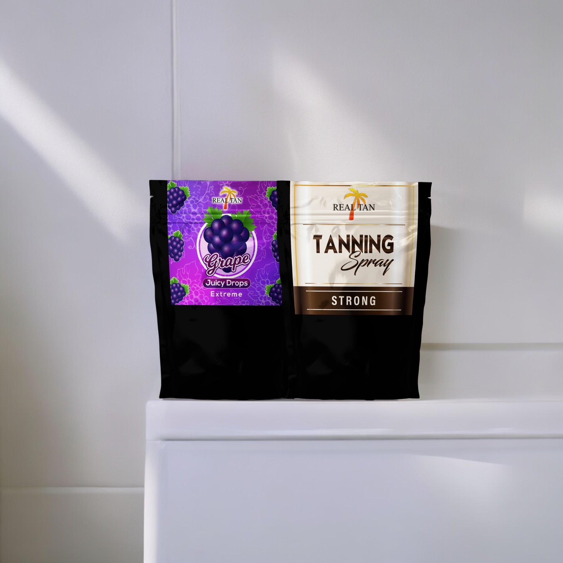 We put this amazing and very a-peeling bundle together for the babe that needs the Real Tan faves, NOW! This is the ultimate way to achieve your deepest, darkest tan, that lasts all summer long. Seriously. It starts with our infamous original duo – the Strong Tanning spray and our Extreme Juicy Drops.