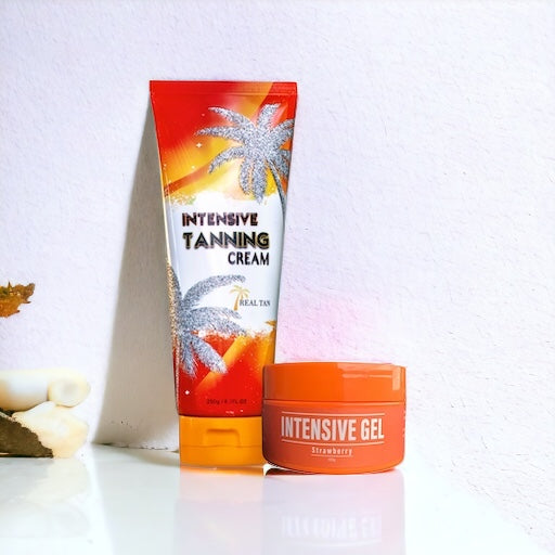 Take your tan on the go with our Tropical Travel Tanning Bundle. Compact and convenient, this bundle features our Intensive Cream and Tanning Gel, perfect for jet-setters and sun-seekers alike. Achieve a sun-kissed complexion wherever your adventures take you.